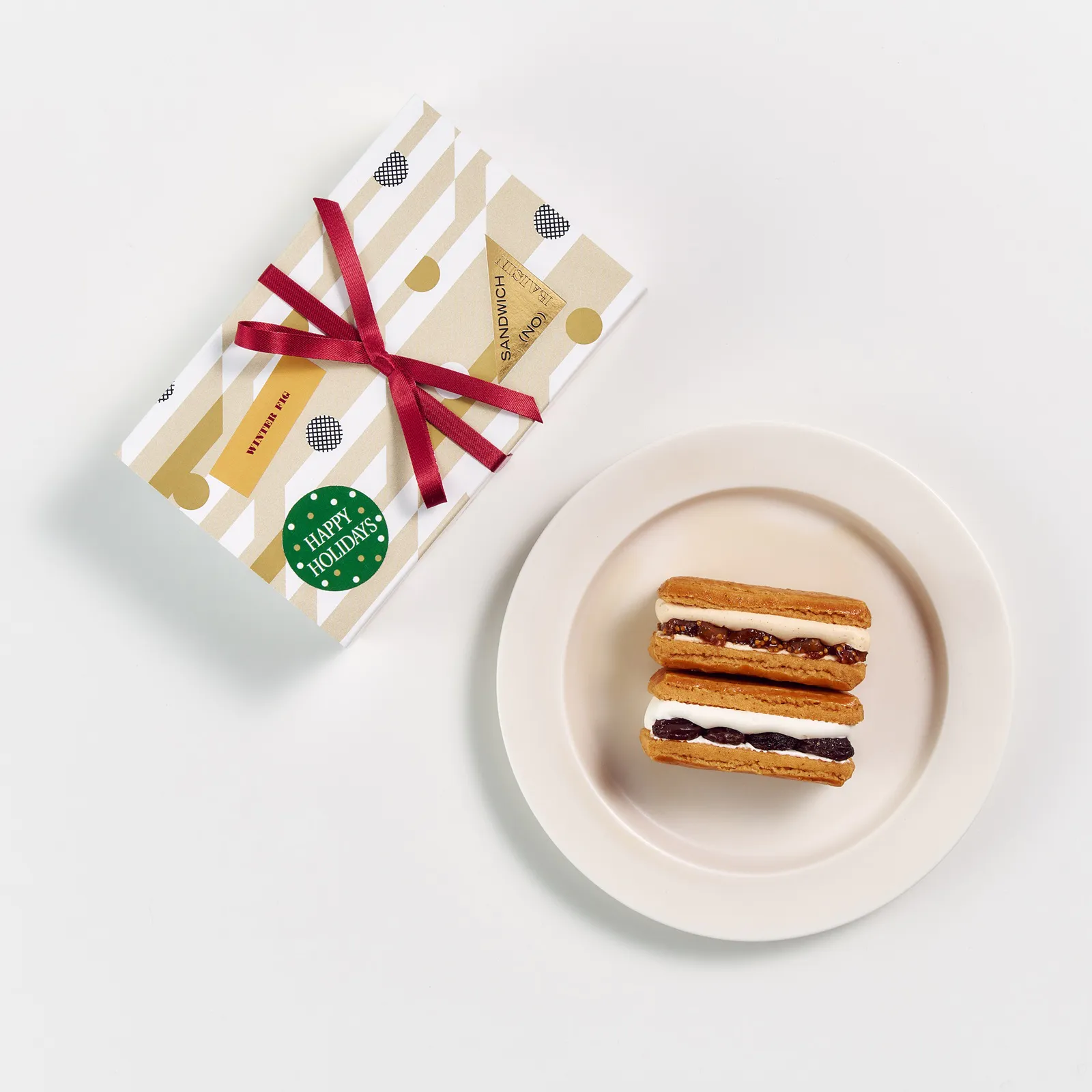 冬の色気たっぷりのスパイスと赤ワインでじっくり煮込んだイチジクを、キャラメル香るバタークリームに乗せ、シナモン入りのふくよかなサブレでサンド。イチジクがプチプチ弾けるたびに心踊る、冬のときめきが詰まったバターサンドです。